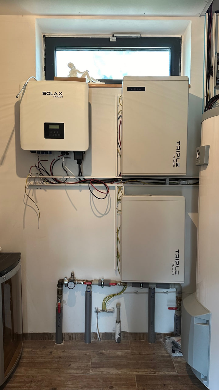 Akumulace energie pro spotřebu v domě je uskutečněna do dvou baterií Triple Power T-BAT H 5.8 LFP o celkové kapacitě 11,6kW a případné přebytky jsou posílány do rozvodné sítě. Do domovního rozvaděče je bezdrátově doveden HDO signál z elektroměrového rozvaděče – tímto signálem může distributor vypnout výrobu měniče.