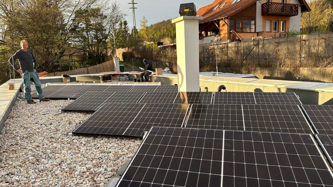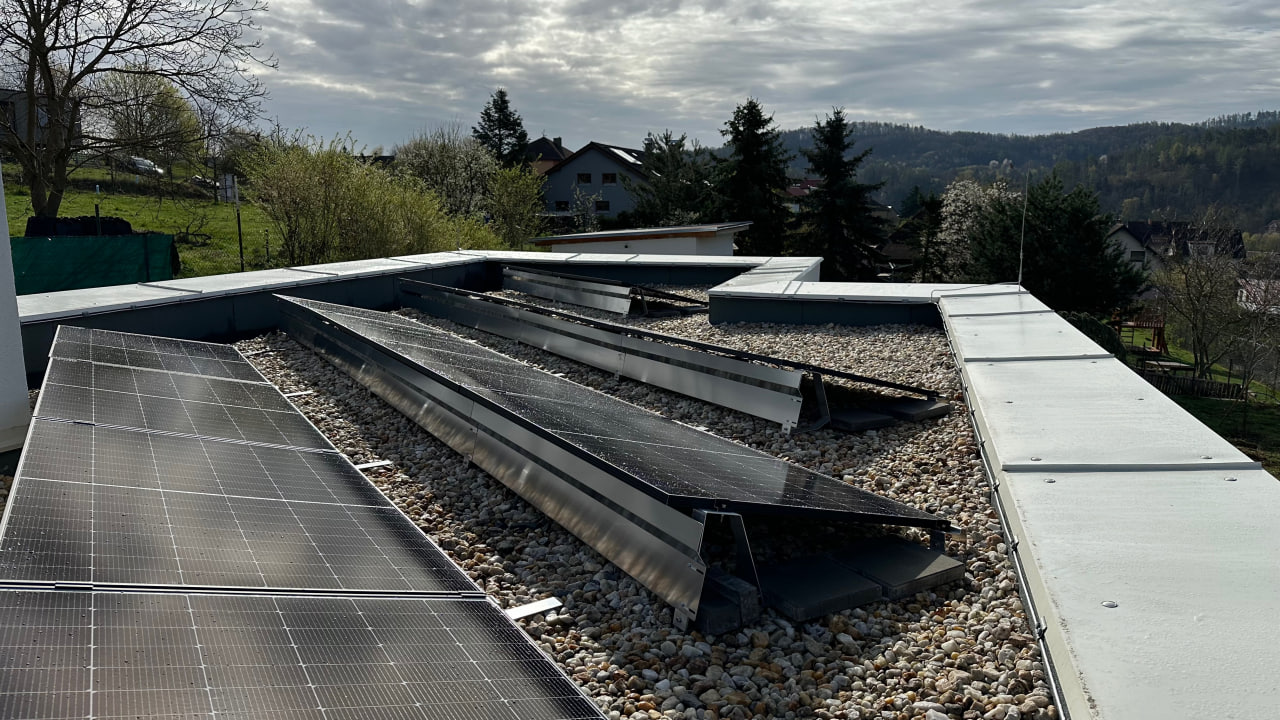 Na ploché střeše domu je instalováno 23 ks fotovoltaických panelů Sunrise Aquaman SR-54MNHL Pro 430W, rozdělených do dvou stringů. Propojení panelů mezi sebou a se střídačem je provedeno kabelem o průřezu 6 mm2. V technické místnosti je nainstalován hybridní třífázový střídač SOLAX X3-hybrid-10.0-D-G4.4. DC rozváděč FVE, umístěný také v technické místnosti, je vybaven 2ks DC odpojovači pro účely odpojení FV panelů (stringů). Dále je rozváděč vybaven 2ks přepěťových ochran, jedna pro každý string.