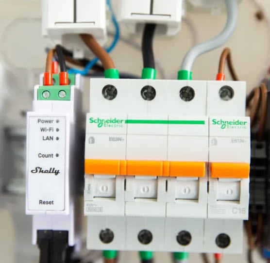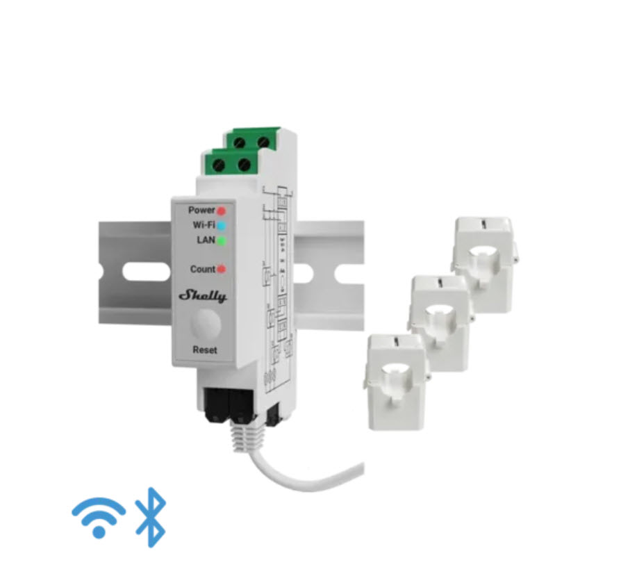Shelly Pro 3EM je třífázový měřič energie s Wi-Fi připojením a možností montáže na DIN s Wi-Fi, Bluetooth a LAN připojením.