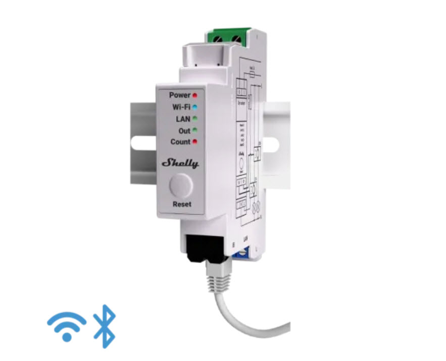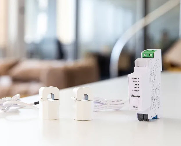 Shelly Pro EM-50 je jednofázový elektroměr s montáží na DIN a s integrovaným spínačem pro ovládání stykačů